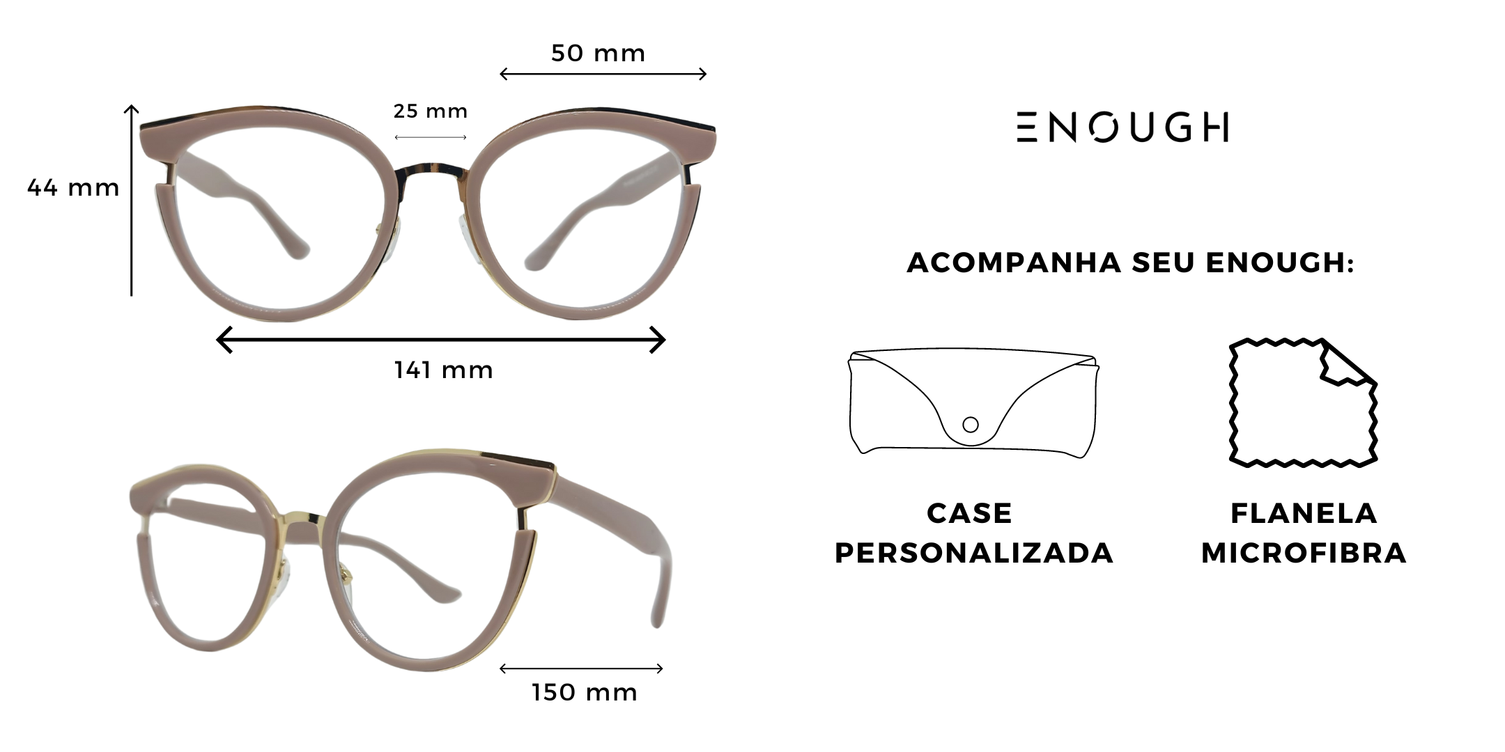 As hastes e a armação na cor nude com detalhes em dourado adicionam um toque de sofisticação e glamour ao seu visual. A espessura fina e leve torna essa armação ideal para uso prolongado, sem causar desconforto.