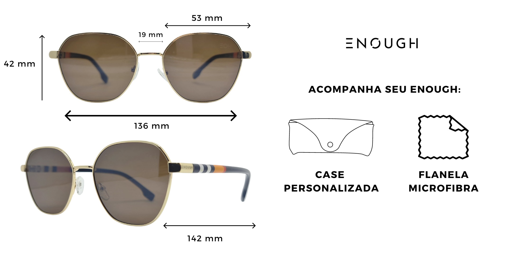 Com hastes e armações finas na cor dourado e detalhes em listras nas hastes, esses óculos combinam durabilidade e estilo. O material em acetato com liga metálica garante resistência e leveza, tornando-os confortáveis para o uso diário.