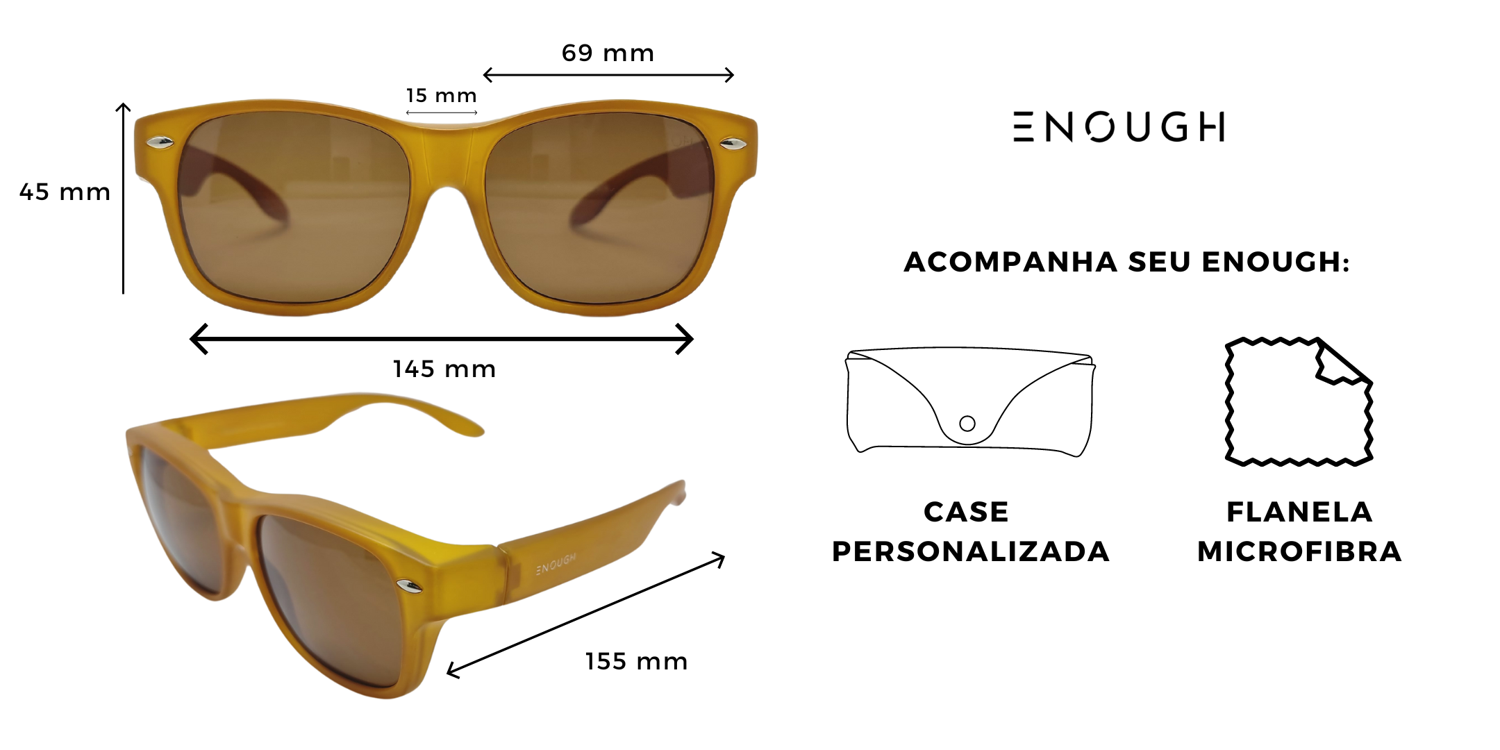 Acompanha case e flanela de limpeza para manter seus óculos sempre em perfeito estado.