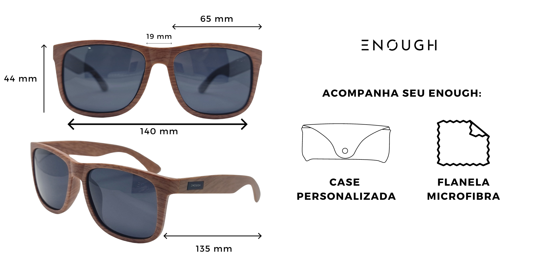 Acompanha case e flanela de limpeza para manter seus óculos sempre em perfeito estado.